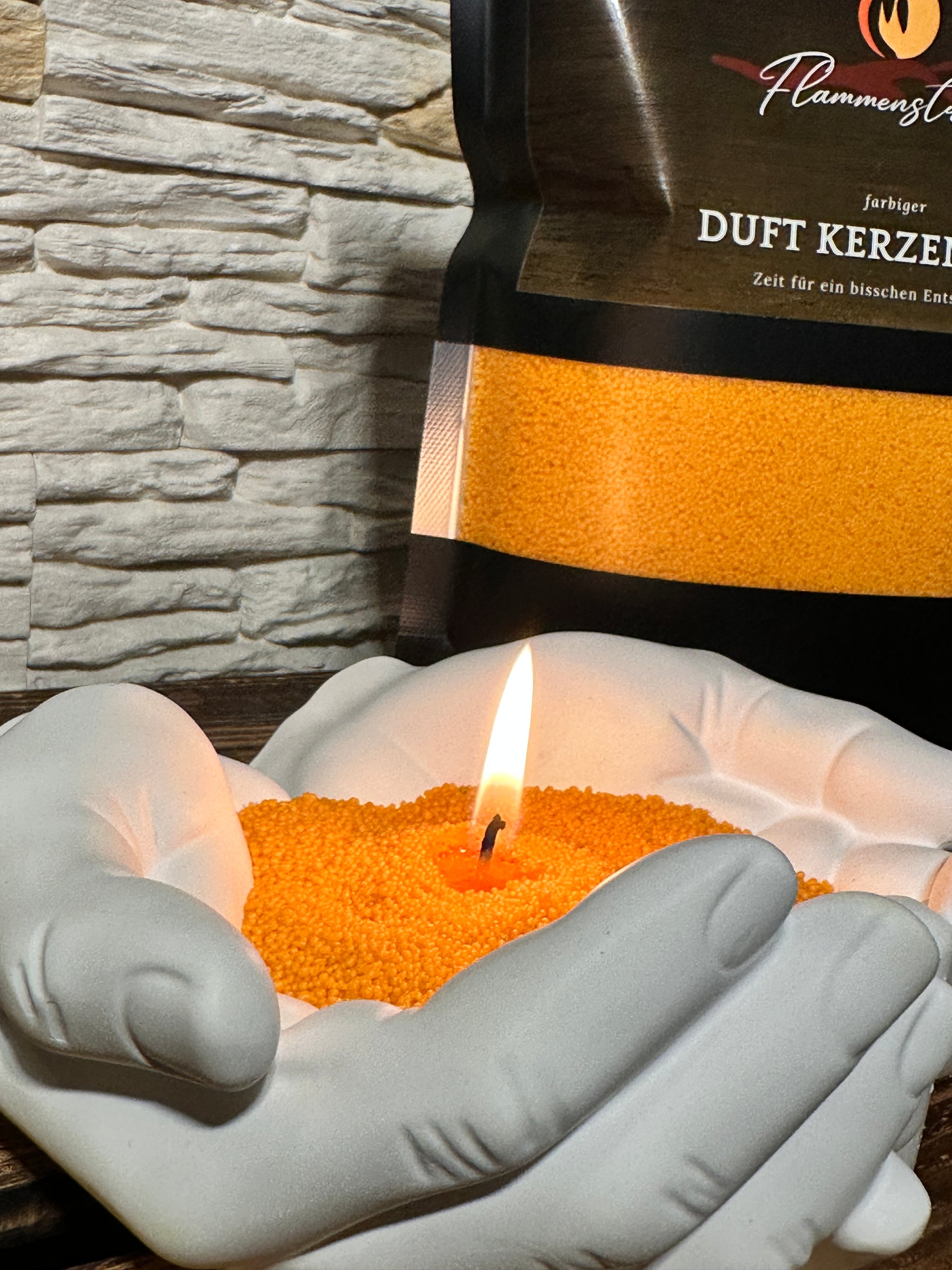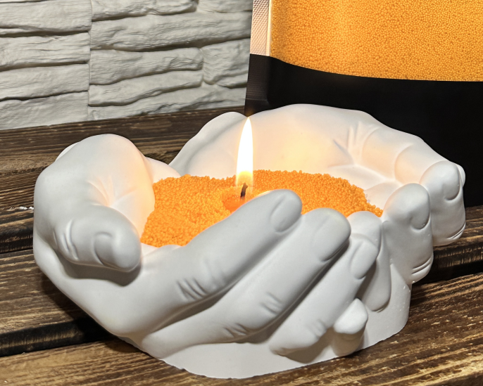 Die Hände bestehen aus Gips und sind feuerfest wodurch sie sich perfekt für unseren Kerzensand eignen.
