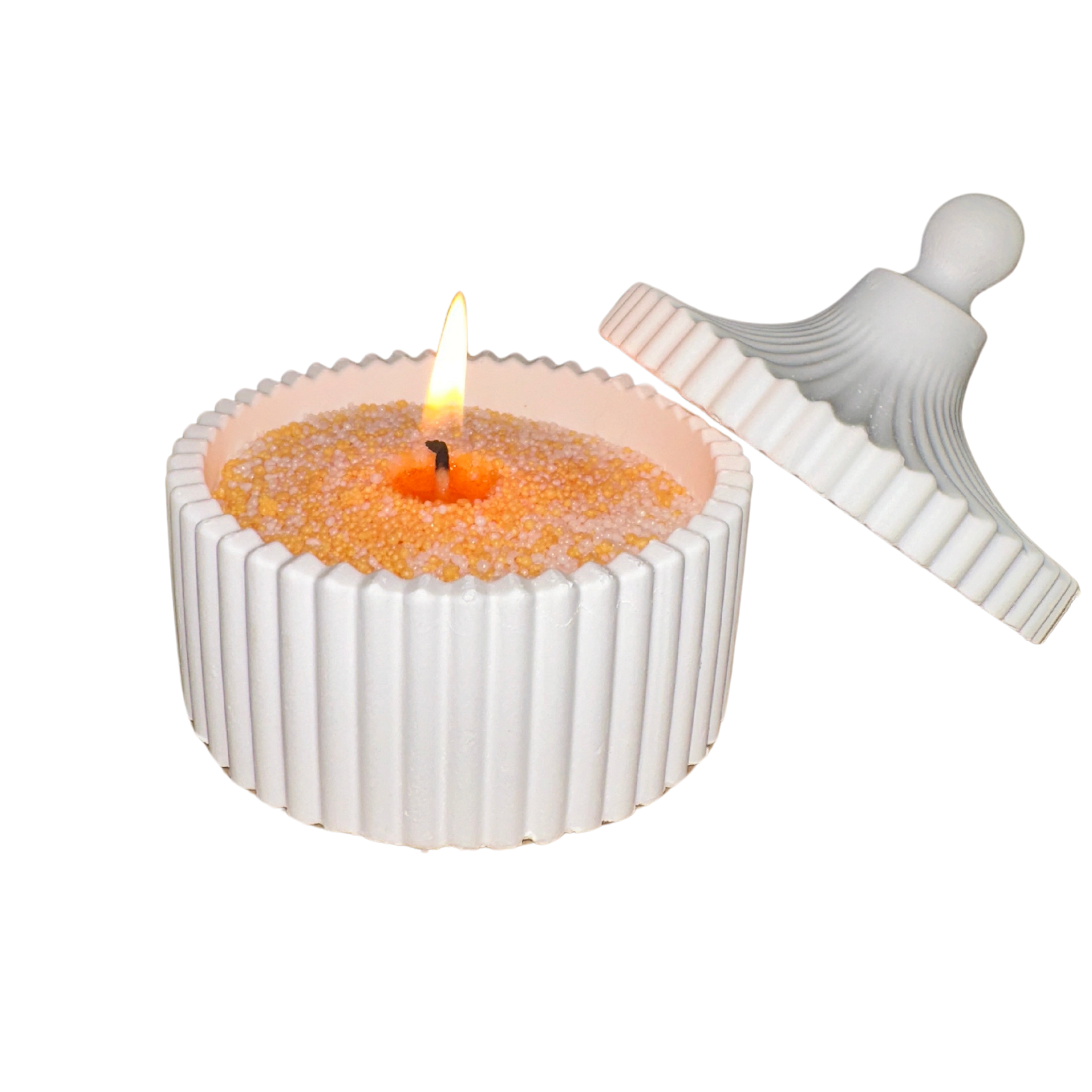 Gefäß mit Deckel aus Gips für Kerzensand